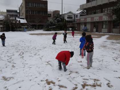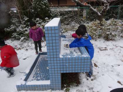 みつば幼稚園の園庭や広場が雪で真っ白になりました!