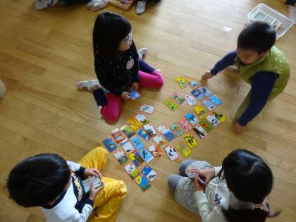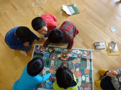 双六や、かるた、絵合わせカードゲームなど友達や先生と一緒に遊び、久しぶりの幼稚園生活を楽しんでいました。