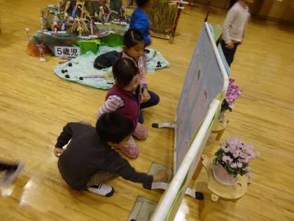 お客様(おうちの人等)にも見ていただいていますが、子どもたちも自分たちの作品を見ました。