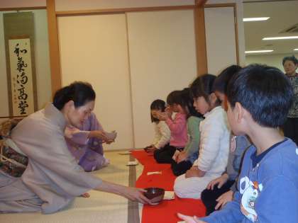 午後から、1クラスずつ、自治会館でお茶をいただきました。