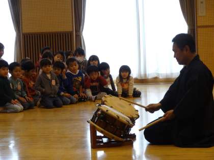 子どもたちはそれぞれに太鼓の響きを感じています。