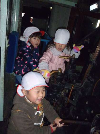 機関車館はほとんどみつば幼稚園の貸切りのような状態で