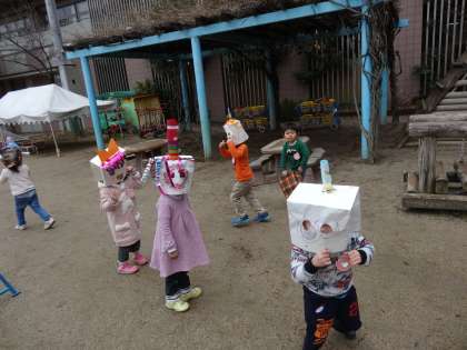 幼稚園で豆まきをして、家庭に持ち帰りました。
