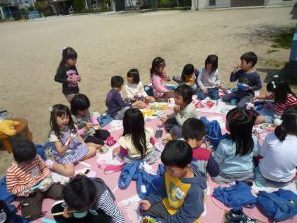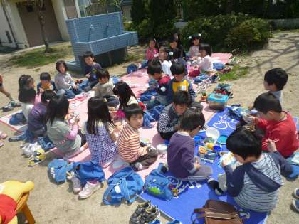 4月19日に,ゆり組の子どもたちは外で弁当を食べました。