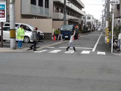 子どもたちは一生懸命交通ルールを守り歩きました。