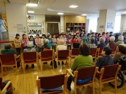 おじいちゃん、おばあちゃん、職員さんみなさんがとても嬉しそうに歌を聞いてくださり、ふじ組の子どもたちがもうすぐ1年生になることを話すと