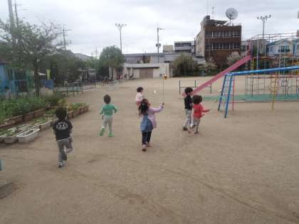 雨が上がって,久しぶりの園庭。元気に駆け回って遊びました。