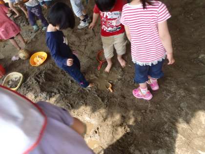 つめたいわ〜砂場の泥遊び