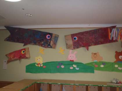 楽しかった絵の具遊びの紙は,こいのぼりに変身しましたよ!