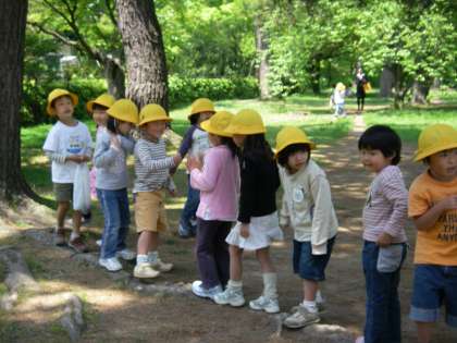 4・5歳児が今年初めて,京都御苑に園外保育に行きました。