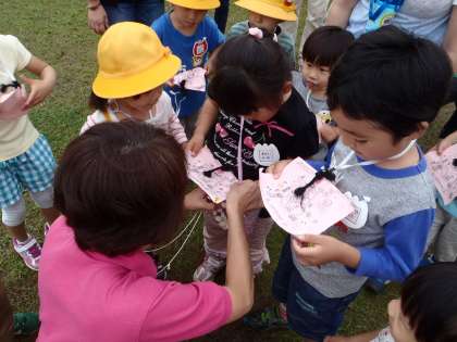 たくさんの発見をして最後はゴールで待っておられた園長先生にキラキラのごほうびシールをもらい,子どもたちはとってもうれしそうでした。