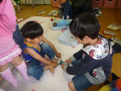 初めてのことでドキドキしていたたんぽぽ組・もも組の子どもたちも、おにいさん・おねえさんの助けを借りて、楽しく終えることができました。