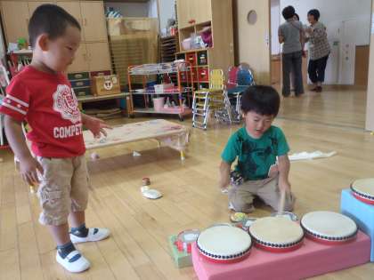 太鼓の音につられて,友達が集まってきて遊ぶのって