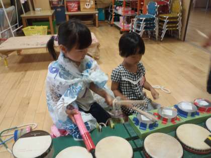 昨日パーランクの太鼓をたたいて遊んでいた3歳児の