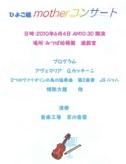 下記のように,ひよこ組motherコンサートをいたします。