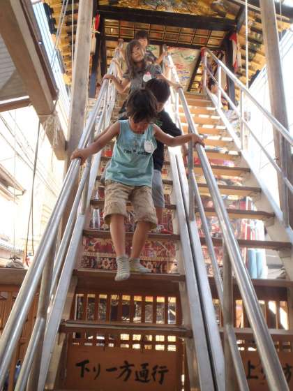 下が見える,高い階段は少し怖かったけれど…勇気を出してみんな登ることができました!