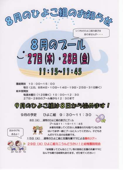 明日7月30日もひよこ組プールがありますよ!ぜひ来てくださいね!