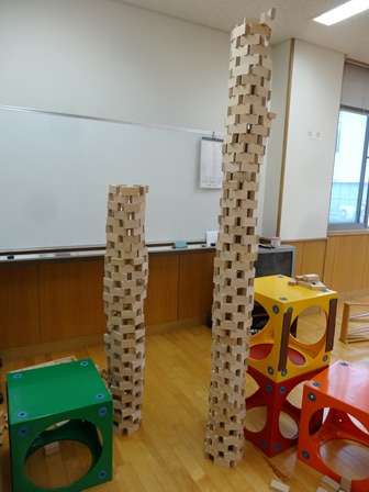 いろいろな形に並べたり積んだりして遊びました。