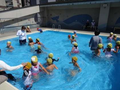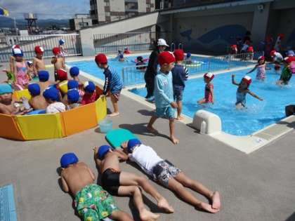 プールならではの楽しみの中で、さまざまな育ちが見られました。