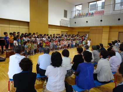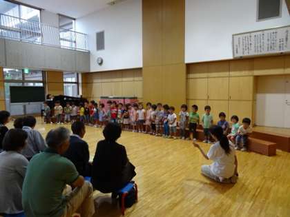 子どもたちが遊ぶ姿や、みんなで歌を歌う姿を参観していただきました。