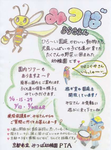 今年も下記の日程で幼稚園PTA現役先輩ママさんによる,幼稚園園内ツアーを企画してくださいました。1回目は6月4日のひよこ組motherコンサートの日です。