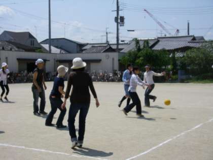 準備体操の後,いよいよゲームが始まったのですが,この日はとても暑い日でしたが,暑さに負けないくらいの熱戦が繰り広げられました。