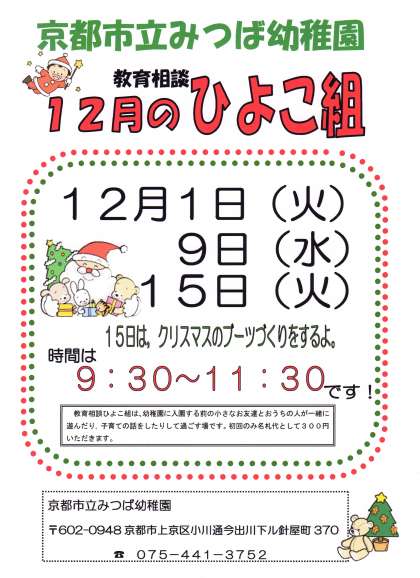 12月のひよこ組のご案内