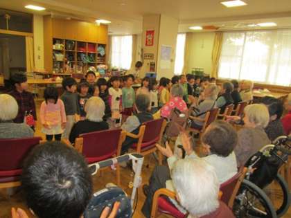 おじいちゃんやおばあちゃんがニコニコして子どもたちの歌を聞いてくださいました。