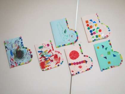 3歳児はテープやシールを貼ることがとっても好きなので、たくさん貼って楽しみながら袋をつくっています。