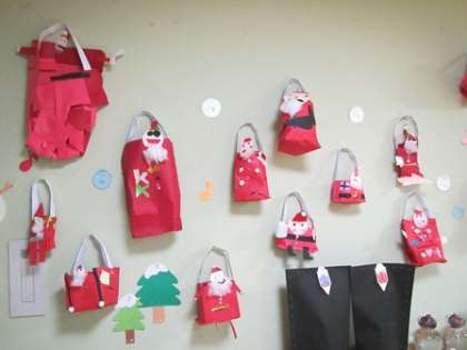 それをサンタさんの胴にしてサンタさん型のプレゼント袋をつくりました。