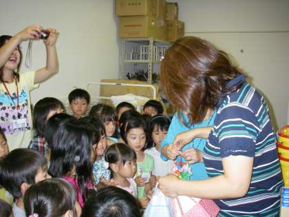 園庭や保育室で遊んだり,片づけをしたりしている普段の生活を見に来てくださいました。子どもたちの様子を目を細めて喜んでみていただいていました。
