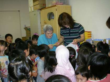 いつもは,幼稚園の子どもたちがお隣の特別養護老人ホームを訪問して交流をさせていただくのですが,先日はデイサービスをご利用されている,おじいちゃん・おばあちゃんが幼稚園に来てくださいました。