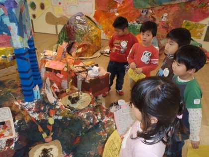 他の幼稚園のお友達がつくったものやかいたものを見ると、自分でも“やってみたいなあ”“こんなことができるんだ!”という気持ちがわいてくるようです。