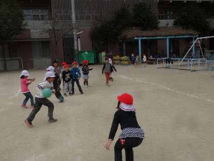 ゆり組の子どもたちがドッチボールをしています。