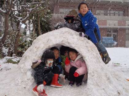 雪が降っていて寒いのに,心も体もぽかぽかしていました。