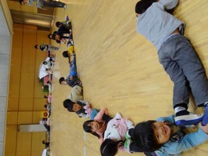 3歳児の2クラスが一緒に遊戯室で遊んでいた時のことです。