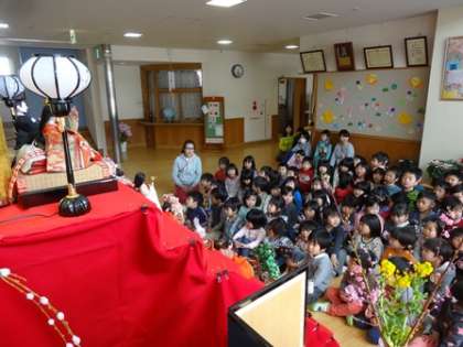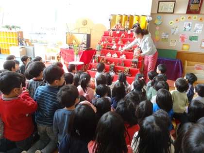 みんなで歌を歌ったり、ひなまつりの話を聞いたりしました。