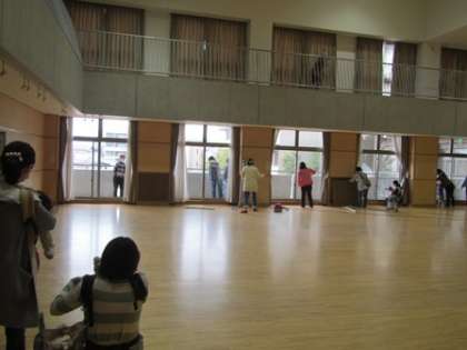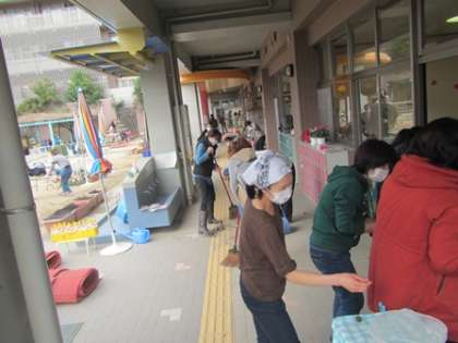 子どもたちは保育室の床や、道具箱などをきれいにしました。