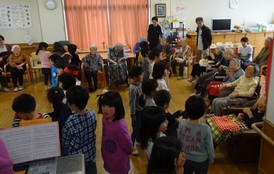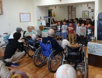 もうすぐ幼稚園を修了して小学生になることを特養の皆さんにお伝えすると、「そうか、小学校か。」と喜んでくださいました。そして、今日も「子どもさん、かわいいなあ」「(歌が)上手やなあ」とあたたかく声をかけていただきました。