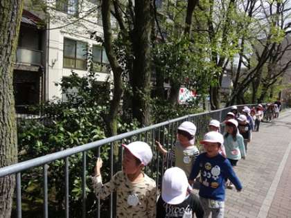 ゆり組になった子どもたちが、進級して初めての園外への散歩に行きました。