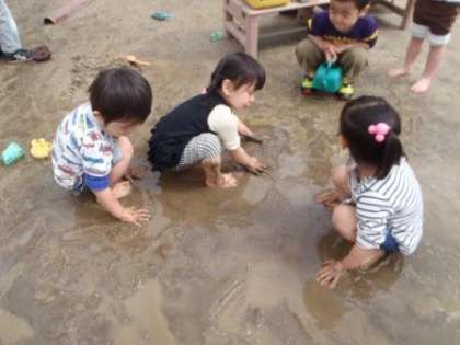 思い切り,泥の感触を楽しんでいました。