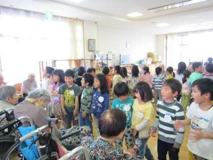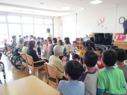 5歳児の子どもたちが隣の特別養護老人ホームへ行きました。