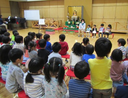初めて誕生会に参加する3歳児もみんなで一緒にお祝いしました。