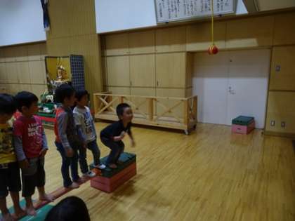 遊戯室で功技台や大積木で5歳児や4歳児が遊びました。