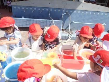 今日は,保育室の前でジュース屋さんごっこを楽しみました。