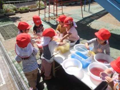 冷たい水に触れているだけでも,とても気持ちがよく,子どもたちは感触を楽しみながら色が変わっていく様子を見ていました。