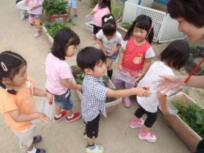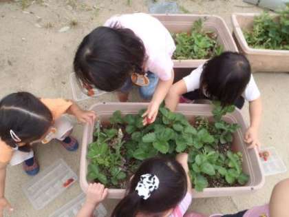 園庭にイチゴがたくさんできていました。