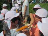 みんなで引っ張ってみたり、周りの土を掘ったりしました。