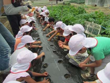 ひとつの穴に種が3粒。