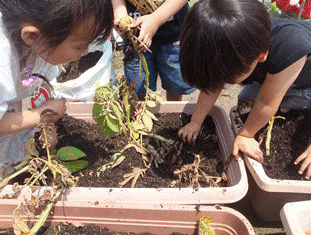 「赤ちゃんジャガイモが出てきた〜!」と喜んだり,